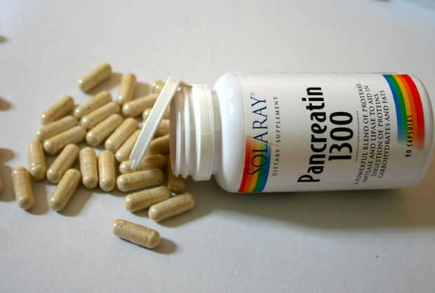 Pancreatina puede encontrarse en su tienda local de la vitamina que es utilizado por personas que tienen problemas para digerir los alimentos debido a problemas con su páncreas. El páncreas libera las enzimas digestivas. Los comprimidos de pancreatina contienen porcino (!!!) amilasa, lipasa y proteasa disolver protien, grasa y carbohidratos. OINK OINK.