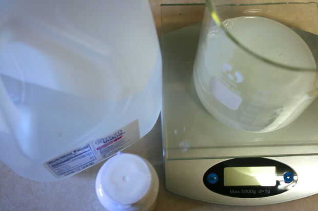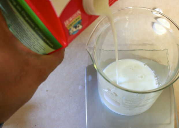 - Vierta 7g de leche descremada en un vaso de precipitados.