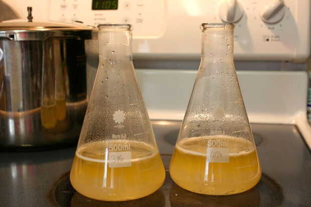 - Calentar la mezcla hasta disuelve sal y agar-agar (tal vez un hervor lento, usted no quiere quemar el agar).