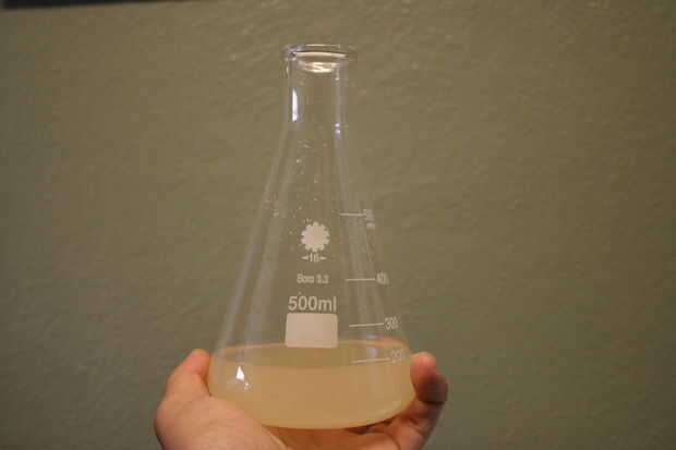 - Añadir 100ml de agua destilada y mezclar. Luego agregar el contenido de 1 cápsula de pancreatina y mezclar.