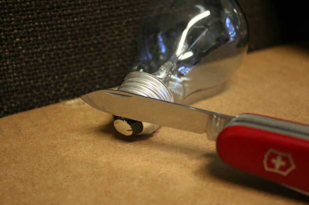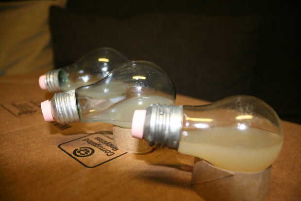 Hice mía por sacar la parte de atrás de una bombilla y verter el gel de manera que hice una agradable inclinación del medio agar para mostrar las bacterias.