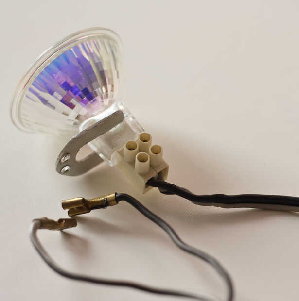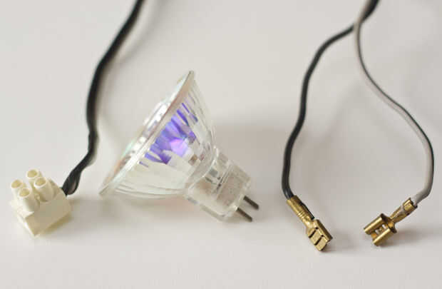Para conectar la lámpara de pines para el cable simplemente usan un conector de tornillo, uso entonces dos terminales faston en el otro lado del alambre. Estos terminales son perfectos para conectar en la batería de plomo de 12V, pero tal vez desee utilizar una batería de ion-litio con diferentes conectores.