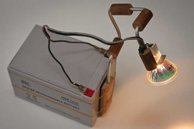 Entonces necesita una banda para envolver alrededor de la base y fijarla en la batería o en otro objeto, he usado dos elásticos pero tengo que encontrar algo más fuerte. También puede utilizar una abrazadera de resorte para fijar el tablero de madera sobre la mesa.