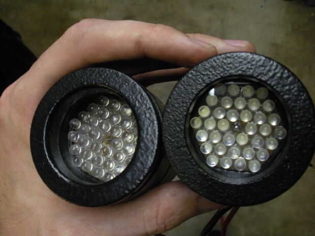 He pensado sobre la construcción de otro conjunto de ellos para otros proyectos usando resistores de montaje superficial y superficial montaje LED y un tablero cara dos así que todo no es tan estrecho, pero recientemente descubrí que puedo conseguir dos focos de LED 10w impermeables en cubiertas de aluminio (hechas para fuentes y piscinas) para menores de 20 $ en eBay.