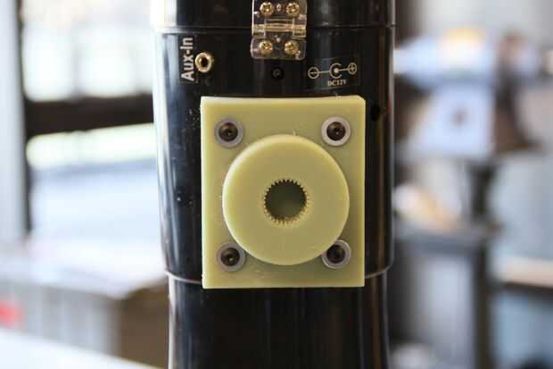 Fueron diseñados usando Fusion360 y hechos caber perfectamente el radio de la megafonía y los dientes de engranaje en el motor.