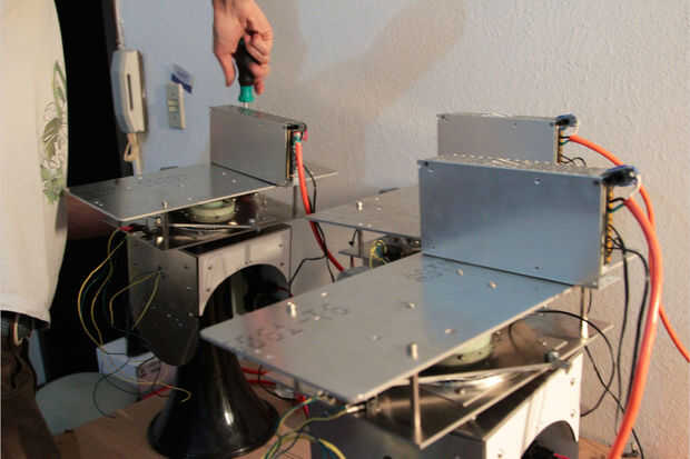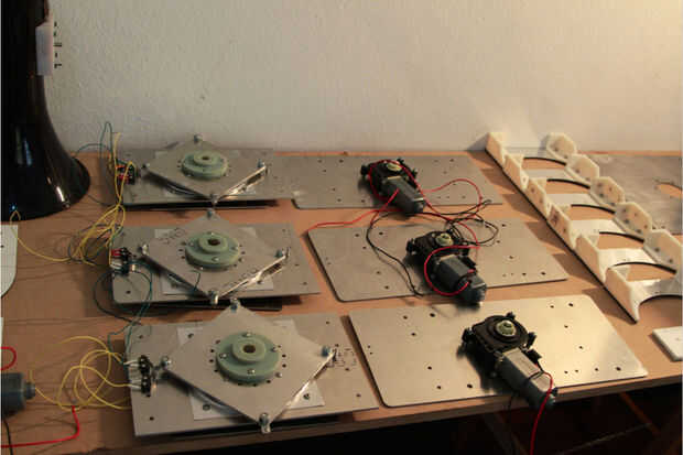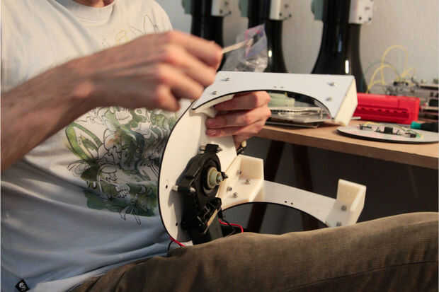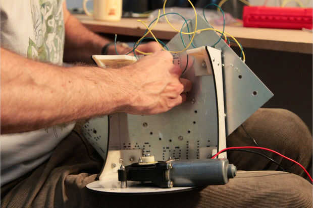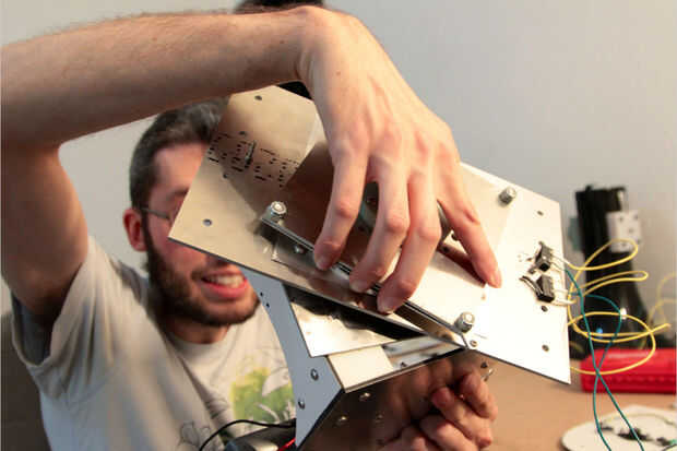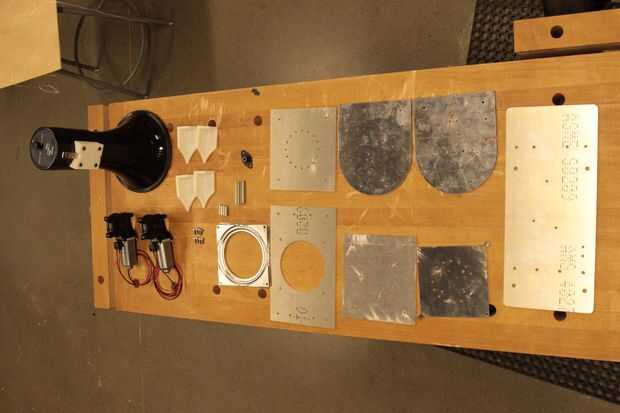 Una vez todas las piezas eran cortadas e impreso, ensamblar el mecanismo no fue difícil. La mayoría de los paneles tenían algún tipo de componente conectado a ellos, como interruptores o cojinetes, por lo que los Haz conectados antes de montar la estructura.
