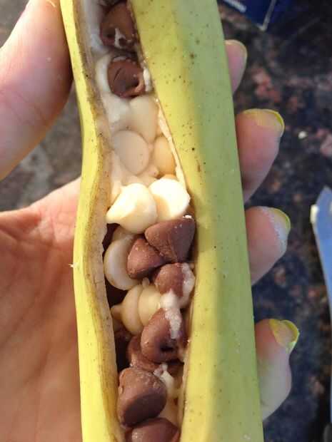 En nuestra noche de despedida de nuestro segundo viaje a los Estados Unidos nuestros amigos que nos estábamos quedando con nosotros cocinan hasta una delicia en una fogata - Chocolate Bananas!Cuando regresamos tuvimos que hacer esta delicia maravillo