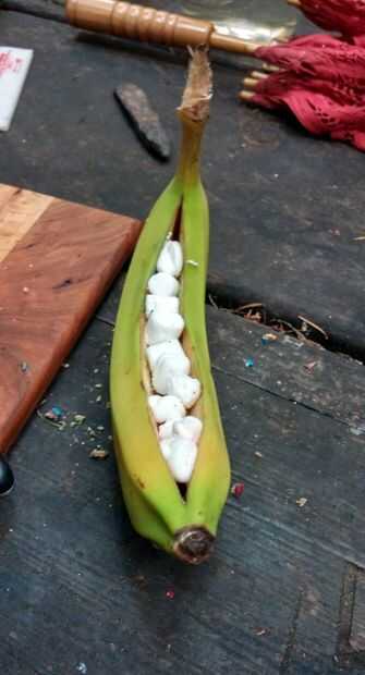 Este es un delicioso placer cuando acampar o simplemente tener una fogata afuera en su patio trasero! Con estos simples pasos poco tienes un delicioso tratamiento chocolate.Cosas que necesitará:Chips de chocolateMalvaviscosCanelaUn plátanoPapel de al