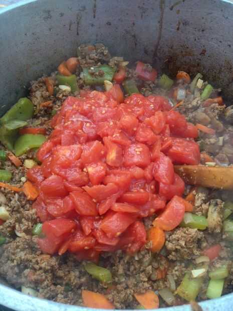 Agregar algunos trocitos de tomate. Enlatados o frescos funcionará. Cocinar un poco más.