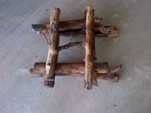 Organizar la madera en forma de fogata. Hice mío en forma de cabaña, pero se puede