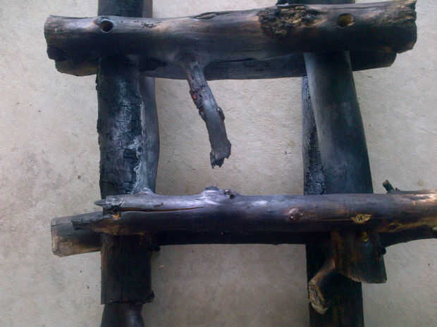 madera quemada. Cuando la madera está hecho y frío, será negro. Puede utilizar un poco de pintura rojo, amarillo o blanco para añadir énfasis a la madera como carbones encendidos. No utilice mucho. Sólo la voluntad de énfasis de la pintura han visto cuando las luces estén encendidas.