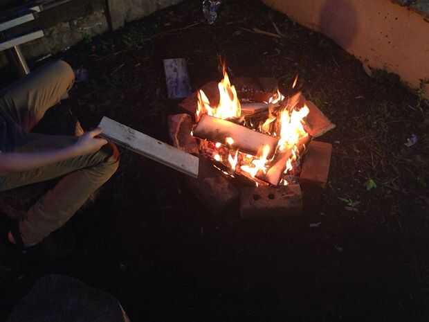 Esto no es un instructivo sobre cómo construir un fuego - si lo necesita, esta es buena. Tenemos un buen fuego mientras que el bateador fue hecho y descansó. El fuego había levantado inmediatamente de todos los espíritus, pero los niveles de hambre también inmediatamente levantado por un factor de diez!