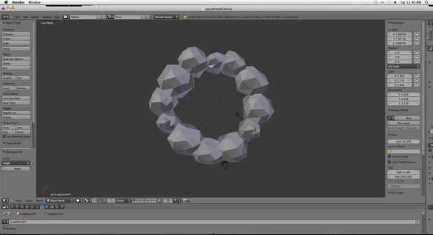 Hice las piezas en una licuadora. Quería que las rocas que parecen rocas de la montaña (en comparación con las rocas de la playa) así que comencé con un anillo de icosahedrons y moví los puntos para suavizar en formas más redondas. I se unió a ellos y exportados como un .obj para 123D, que es mucho menos exigente acerca de los archivos de las impresoras 3D.