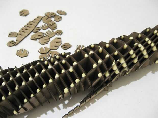 Pero cuando se trata con materiales reales, probablemente tendrás que montar parte de ella, luego pegar algunos, y luego más. Es inteligente probar de montar antes de pegar cualquier cosa. El pegamento más uso, más estabilidad tendrán las piezas.