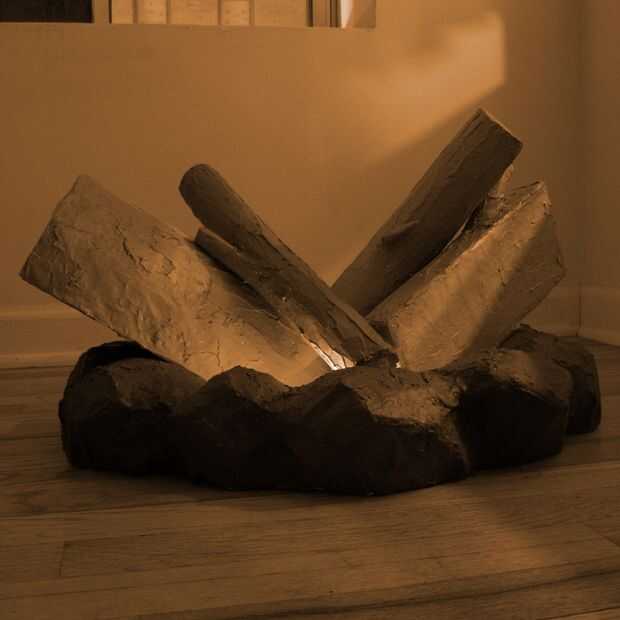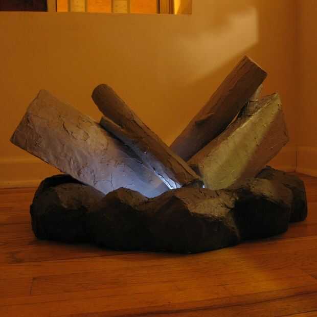 Arregló las luces dentro del anillo de rocas, añadido a las baterías y establecer los registros en la parte superior. Una vez que es bastante convincente, sobre todo por ser simplemente una estilizada lámpara!