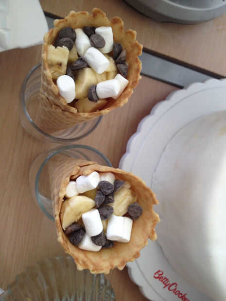 Usted puede llenar estos conos con lo que usted / de los cabritos como realidad. De frutos secos, fruta fresca, dulces, mantequilla de la tuerca. Si tienes un mini refrigerador conectado en el carro o el diesel, puede embalaje también en conservas, nata puede, o salsa como salsa de caramelo o chocolate.