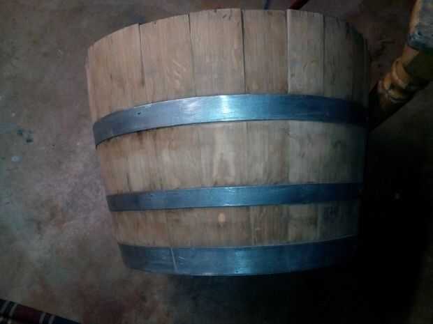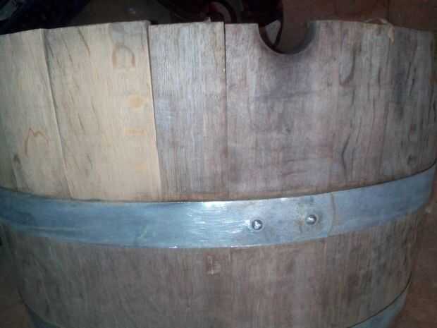 he comprado un barril de vino 25 galones en una venta de garaje por 10$.  Convirtió en un estante del vino iluminado.Paso 1: el barril Se muestra aquí es el barril como originalmente lo compré.  Realmente fue utilizado para hacer vino por su anterior
