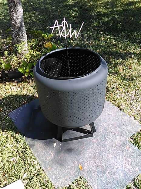 Para el día de San Valentín 2015 decidí construir a mi esposa un hoyo de fuego para el patio trasero. Empecé con una vieja lavadora y un somier reciclado. Mi primo Vince me llamó y me preguntó si quería la lavadora del desecho para uno de sus vecinos, así que lo agarro y tuvo la idea.