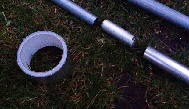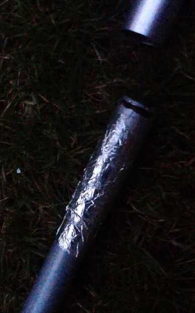 Porque algunos de los tubos a la izquierda un poco a mucho espacio para el otro en el utiliza cinta de aluminio para llenar ese espacio. Usé esta cinta porque claro puede llegar a ser bastante caliente alrededor del fuego. El tubo más grande primero coloca una de las picadas de piezas sobre el tubo más pequeño por lo que llena el espacio suficiente.