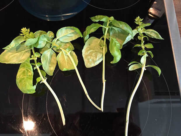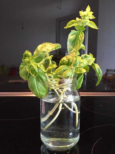 He querido poner algunas albahaca en mi configuración de fogponics. Tenía una planta de albahaca pequeña en mi balcón, así corta algunos tallos, colocados en agua y esperar unas semanas hasta que ellos habían crecido suficiente raíces para colocarlas en el jardín de fogponics.