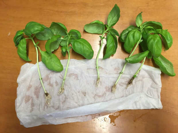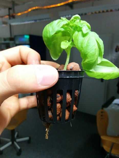 Ahora tomar una taza de red, poner en un cutling planta así un poco de las raíces a través de la parte inferior y llene la Copa con hydroton para estabilizar el plan. Repita para el otro cutlings.