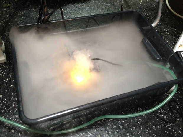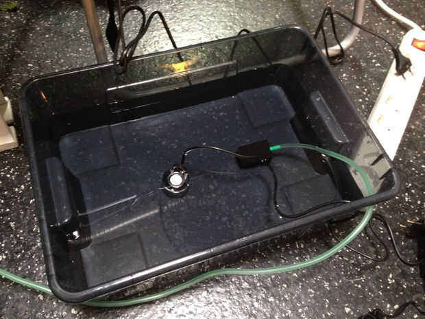 Ahora, llene tu pones la caja cerca de la mitad con agua y conecte el fogger. Debe comenzar a crear una capa de aspecto misteriosa de niebla sobre el agua. Enchufe el airpump, la niebla debe dispersar un poco más y puede ver las burbujas de aire en el agua