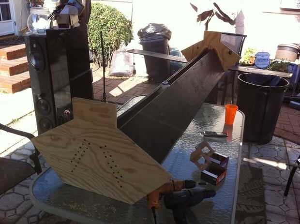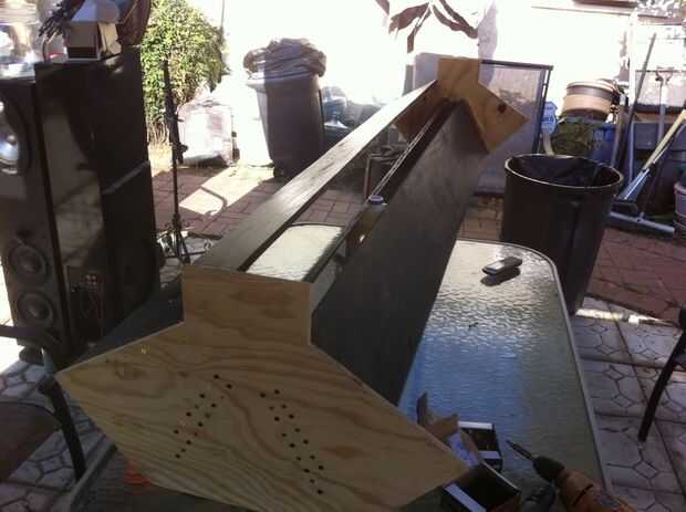 Tomar un pequeño trozo de madera (usé 7 "x 1" x 1 "en el exterior y 10 x 1 x 1 en el centro) y tornillo pegamento a cada lado de una de las tiras de madera contrachapada. Repetir este proceso para el otro lado y poner a las tapas con tornillos para madera de 1.5" y pegamento (según la primera imagen.