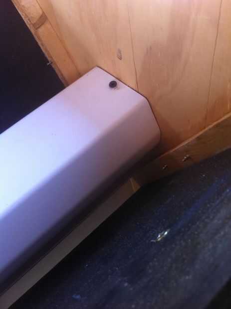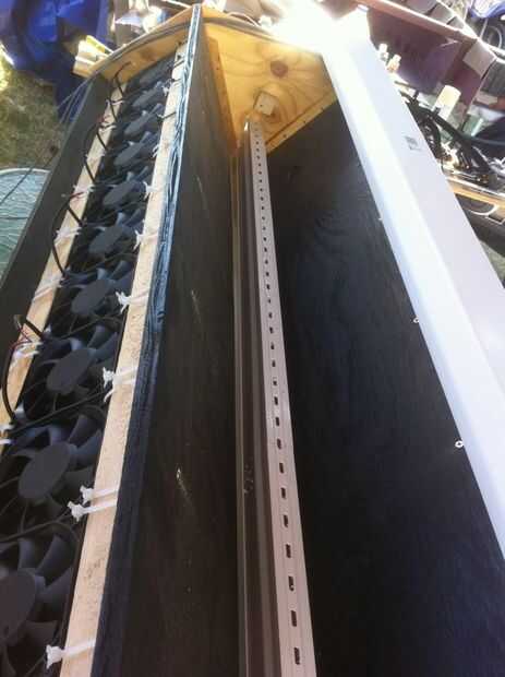Ahora dé vuelta la unidad y fije las aletas del canal al borde de la madera contrachapada de conducto de aire central según la foto. tornillos para madera de 1" funcionan bien para esto... aunque sinceramente es un verdadero dolor al tener que doblar de la manera como atornillar en.
