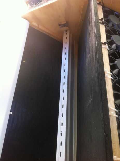 Ahora corte 2 piezas pequeñas de madera para apoyar el canal de aproximadamente 2 "x 1" x 1"... y estos a las paredes laterales con pegamento y tornillos para madera de 1-1.5".