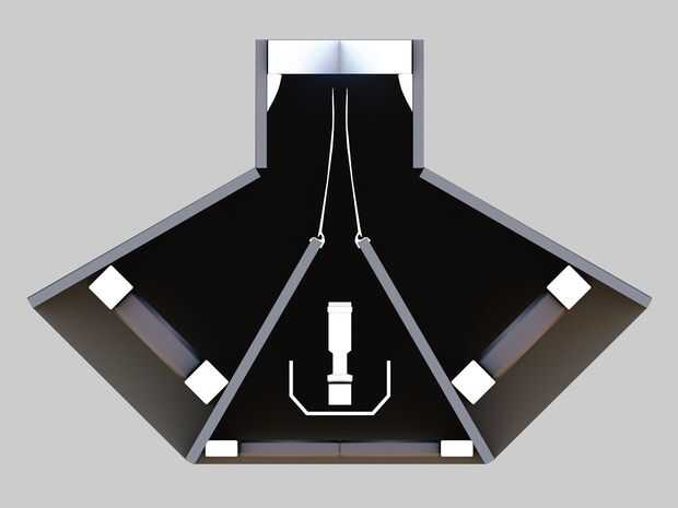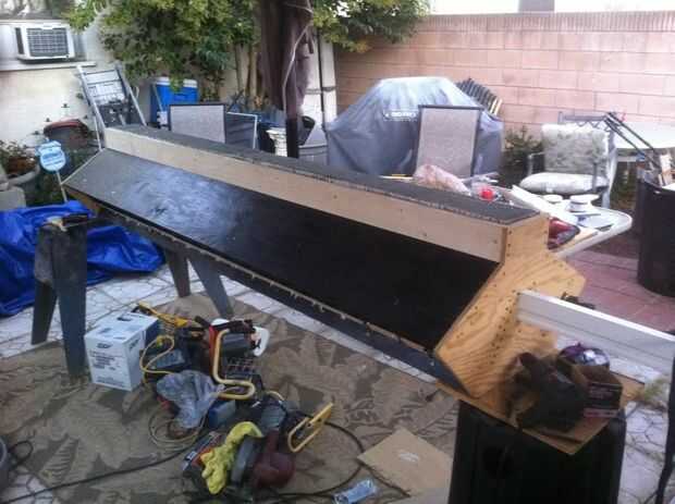 Construí un muro bajo para cubrir, con pilares a cada lado, por lo que el espectador veía flotaba una imagen de 8'x 6'.