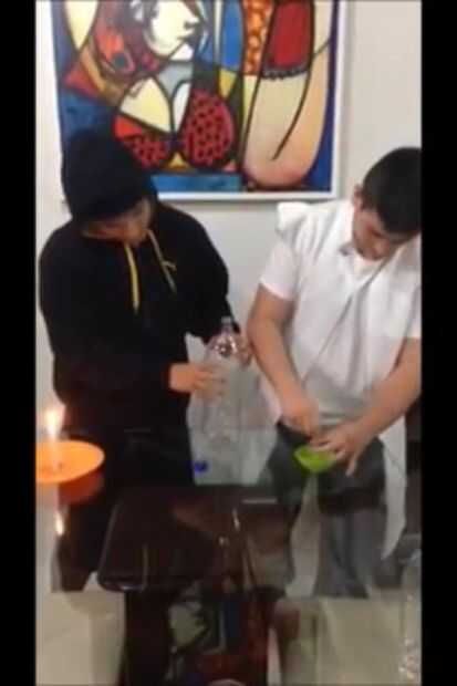 Trabalho de Física2 º año EGabriela (11), Jacqueline (16), Ana (1), Laura (19) e Thaís (40)Paso 1: Materiais 1 garrafa pet1 funil1 tachinhaIsqueiro ou fósforoÁlcoolPaso 2: Furando A Garrafa Para começar, pegue s una garrafa e faça um pequeno furo na