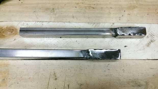 Corte el tubo en dos piezas una de 26 cm de largo y uno de 16,5 cm de largo. ahora corte los ocho trozos de 6 cm fuera de la plancha stock 2 x 20 mm. y soldar en el extremo de tubo te.