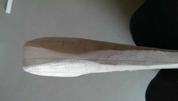 ahora arena la forma hasta que tiene una muy bonita forma redonda. Mantenga la parte delantera de la nariz más gruesa que la parte posterior para mantener el peso en la parte delantera. de 22 cm de la parte delantera de la nariz, mantenga la parte superior tan plano como sea posible.