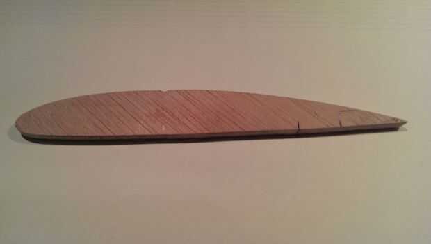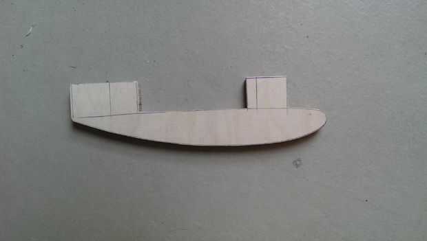 Para construir el cuerpo, empezar con una plantilla de una forma del ala de la madera contrachapada de 5 mm de corte. la forma del ala debe ser aproximadamente 21 cm largo y 3 cm de altura. esta plantilla será muy útil más adelante en la construcción.