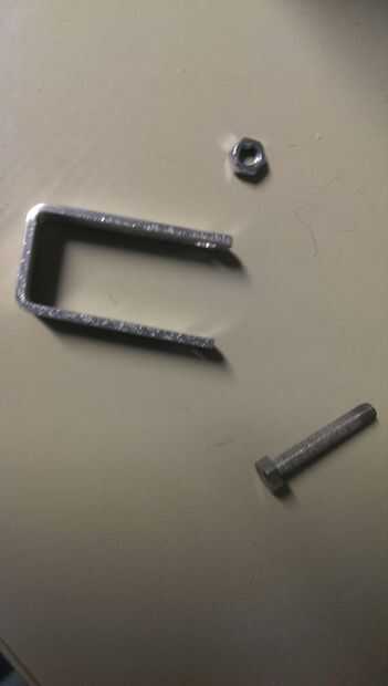 doble la pieza de aluminio en forma de U con un espacio entre las piernas de 20 mm por lo que cuando se empuja sobre las tres piezas encaje perfectamente. Perfore un agujero de 6 mm en ambos extremos de las patas. Presione el soporte de U sobre las tres partes y colocarlo recto. taladro ahora con un canal de taladro de 6 mm el agujero del soporte de U en el punto de fijación del ala. Ahora prueba la sujeción del soporte poniendo un tornillo M5 dura el agujero.