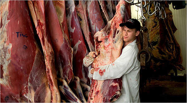 Para crear un sonido de golpes al cuerpo e incluso algunas tomas de la cara de perforación "carnoso", el artista de Foley usará, no es de extrañar, un pedazo de carne. Se recomienda colgar la carne desde el techo como se muestra arriba. Usando un pedazo de carne tan grande como se muestra arriba no es recomendable. La pieza debe ser lo suficientemente grande para proporcionar el sonido punch "carnoso" sin llegar a ser demasiado incómodo. Cinco a diez libras pieza debe hacer el truco.