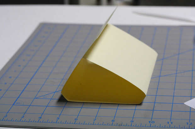 Use el hueso y la regla para marcar las acciones de carpeta y pliegue para caber el folleto. Recuerda añadir el grueso de la población de la carpeta de las aletas exteriores (lado superior y derecho/tab) para cerrar correctamente.
