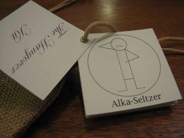 hice este folleto para nuestro kit de resaca. Estamos teniendo una boda y haciendo bolsas de bienvenida para nuestros huéspedes. Te incluimos un kit de resaca que contendrá Advil, Alka-Seltzer y Emergen-C para el día después de la boda.