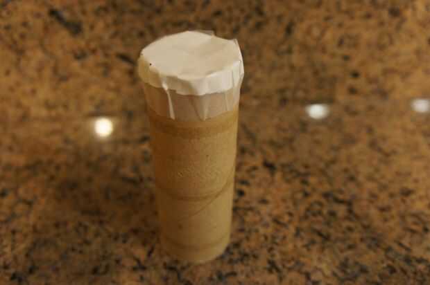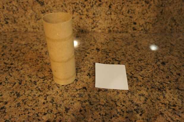 Corte un pedazo de papel lo suficientemente grande como para cubrir la parte superior del tubo. Cinta adhesiva en.
