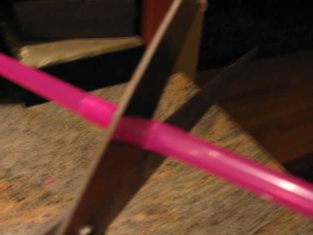 A continuación, aplastar la paja presionando contra la mesa, mostrador o cualquier otra superficie. Tendrá que ser bastante plana. Luego, toma tus tijeras y cortar los lados en el extremo aplastado de la paja, en una diagonal.