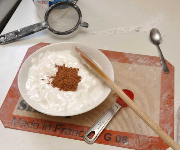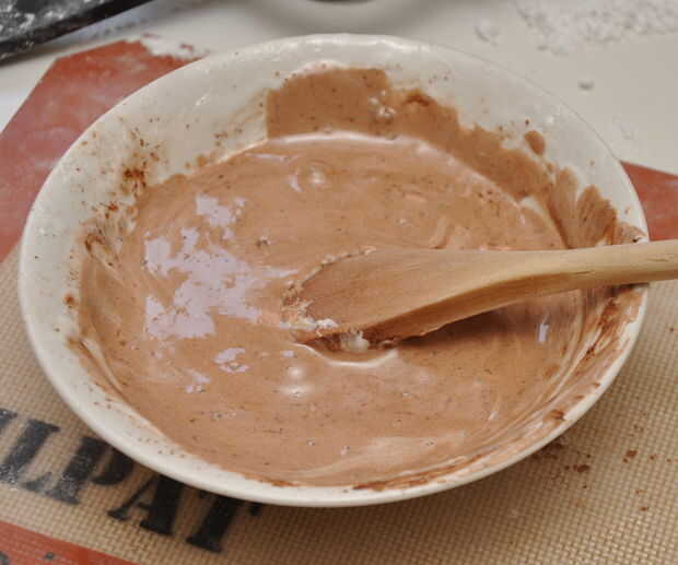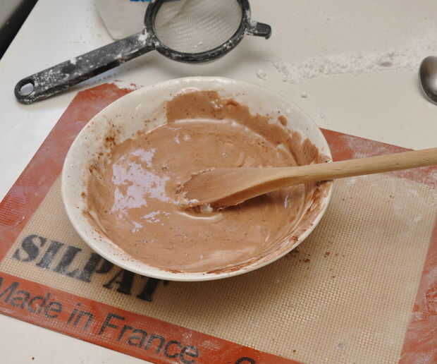 Derretir el malvavisco primero. Una vez listos, mezclar el cacao. Ahora mezclar el azúcar en polvo como normal.