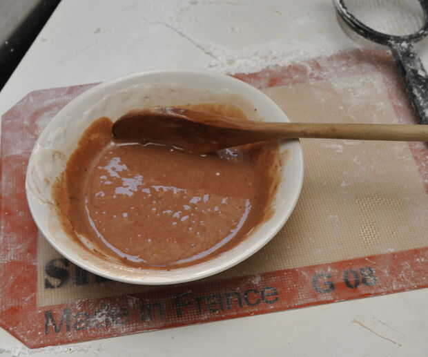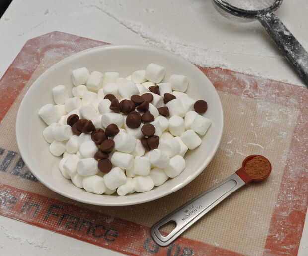 Vas a empezar con derretir los malvaviscos y chips de chocolate. Como dije en el ultimo paso, hacerlo junto o separado una vez que aquellos se hubieran fundido y mezclado bien, mezclan el cacao. Ahora mezclar el azúcar en polvo.