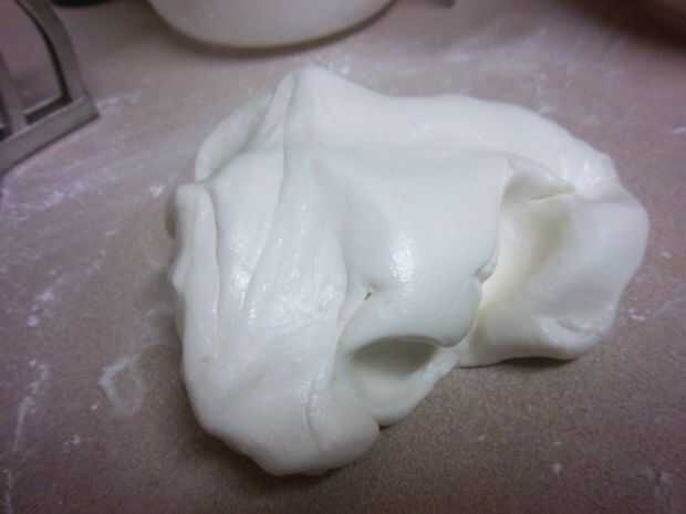 Una vez que los malvaviscos se derritan, cernir y mezclar en 3/4 de su nivel de azúcar en polvo. Mezclar con un tenedor y una vez que la mezcla consigue rígida capa abundantemente las manos con manteca (si parece demasiado tienes lo suficiente) vegetal y amasar la mezcla como masa de pan. Como la mezcla es pegajosa, vuelva a aplicar su acortamiento.