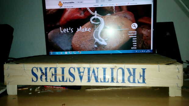 pantalla de mi ordenador es un stand por lo que para acomodar la altura hice un espaciador de un cajón de madera