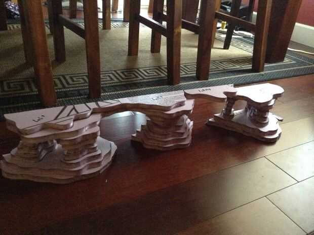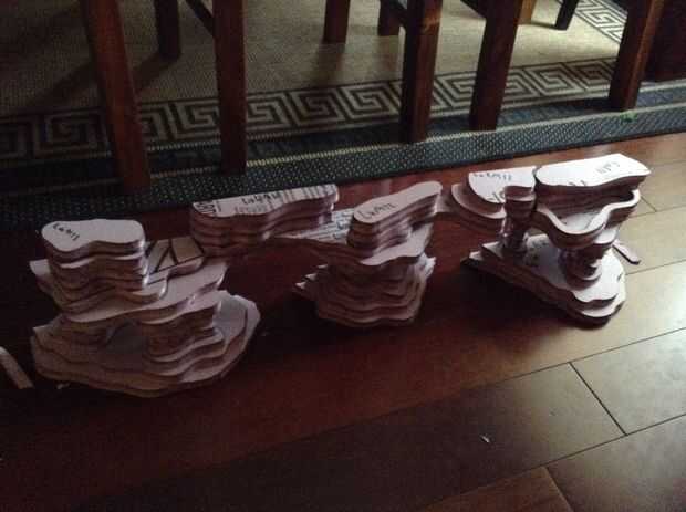 Comencé midiendo el tamaño que quería que el fondo ser. Longitud, altura y anchura. Puesto que mi acuario era 4 pies de largo. Salí de cuarto a cada lado del fondo para poner plantas y esas cosas allí. Si lo desea, podría poner la longitud completa. He usado símbolos no las piezas que corte por lo que sé donde cada pieza de espuma colocado en el fondo. Usted puede utilizar su propio método de esto. Te sugiero que incluyas la capa y el lado. Como cortarlo, hice el diseño capa por capa como fui. Yo sabía que quería un montón de cuevas y un lugar para la caída de arena. Así que hice un poco zona agrupación para la arena de la derecha más adelante donde le Taladre los orificios. En esta capa, ajuste en seco solamente. En caso de que no te gusta la apariencia de algo. Imagina que el cristal posterior de su acuario es detrás de la estructura. De modo que la parte de atrás tan plano como sea posible.