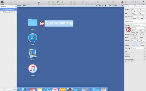 D. para cambiar el tamaño y el color del texto, mira el menú de la derecha. Para este tutorial, seleccione el tipo de letra Helvetica Neue, color blanco y tamaño 40.