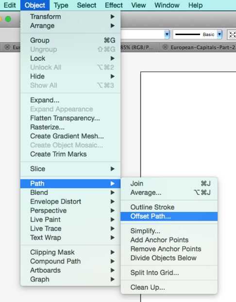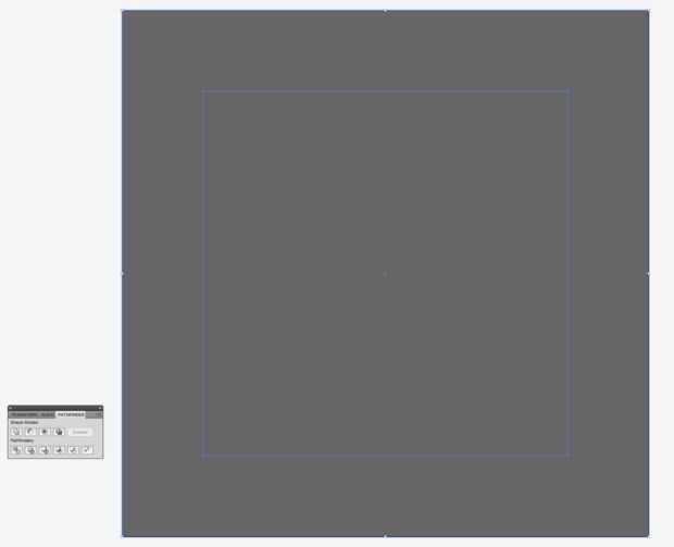 Hice mi lienzo, 13 x 13 pulgadas. Para obtener una mejor idea del espacio con que va a trabajar, yo soy boxeo en donde mi estera blanca va a ir. Para ello, haga clic en la herramienta Rectángulo e introduzca las dimensiones de tu lienzo. Mientras está seleccionado el rectángulo, ir a objeto > Path > Offset Path y en el cuadro offset -2 en. Si la ventana de pathfinder no es abrirlo, ir a ventana > Buscatrazos. Ahora selecciona ambos rectángulos y seleccione la opción de dividir la ventana de pathfinder. Seleccione la plaza central con la herramienta Selección directa (A) y eliminar la plaza central. Ahora usted tiene su estera.