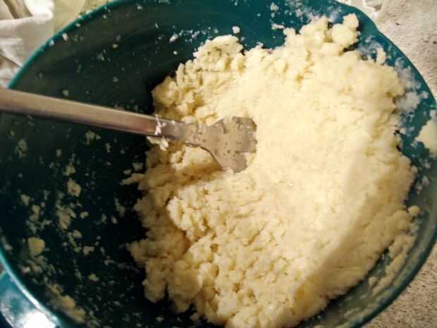 Añadir un huevo y unos 150 gramos de mozzarella rallada. Mezclarlo bien hasta que se ve y se siente como masa normal.