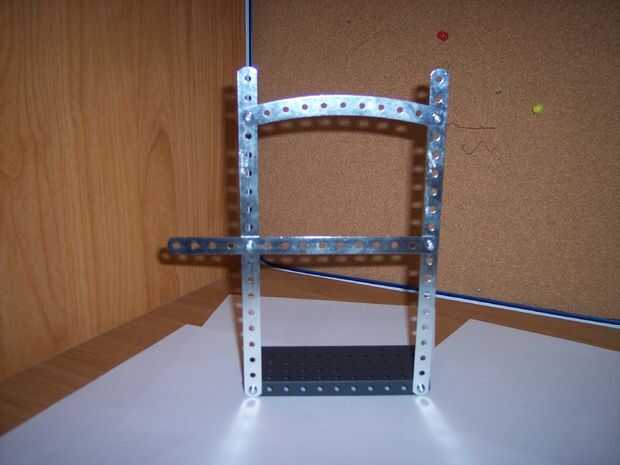 Pero para comenzar a construir, armar una base y colocar piezas de meccano de manera vertical.