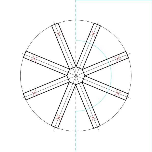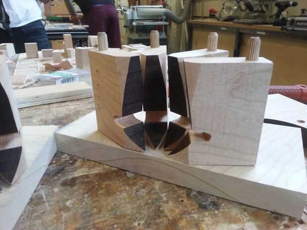 Una vez que todos los perfiles de sus corte, se pueden preparar unir a las caras superior e inferior del molde. Usé la misma estrategia de registro para marcar hacia fuera la colocación del agujero como el perfil de corte. Imprima el patrón de agujero radial que necesita para sujetar las aletas a las placas superior e inferior con tacos. Con cinta adhesiva a las placas que se intercale las aletas. Debe tener 2 placas de la parte superior y 2 para la parte inferior. Los tableros de la parte dos inferior deben ser rectángulos completos y la parte superior dos deben tener un perfil semicircular cortado fuera de él que el vidrio caiga en la parte superior del molde cuando está cerrada.